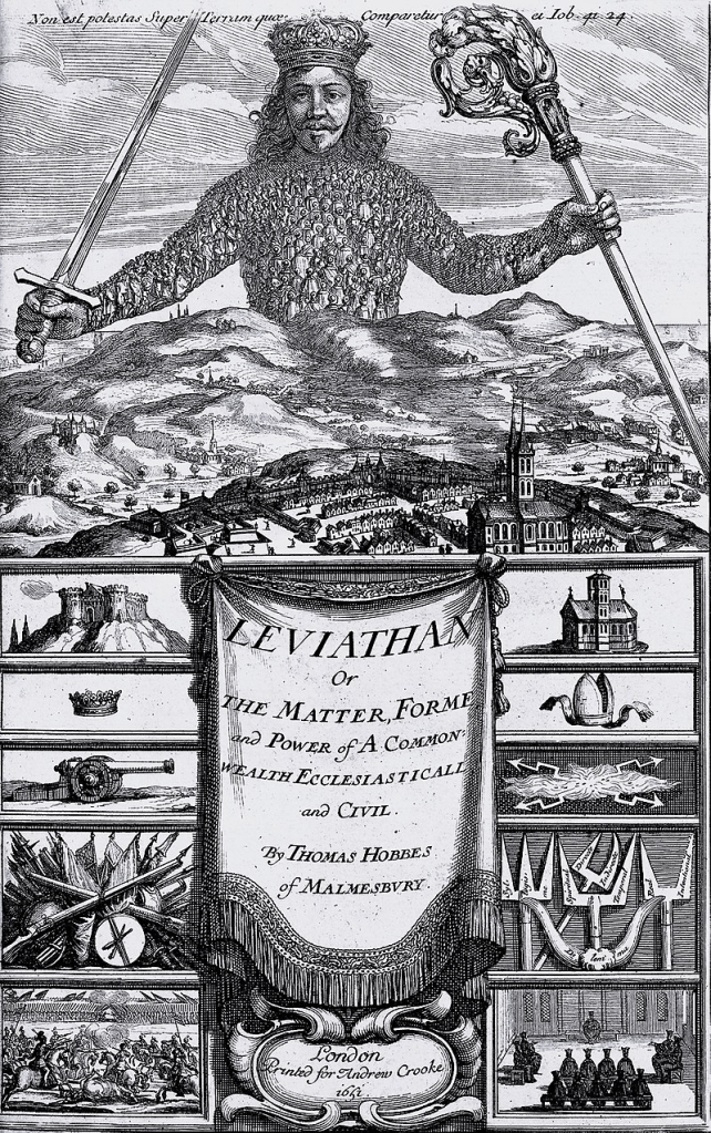 [Thomas Hobbes, Leviathan, sive De materia, forma, & potestate civitatis ecclesiasticae et civilis., Ch 13 and 17, London: Andrew Crooke, 1651).