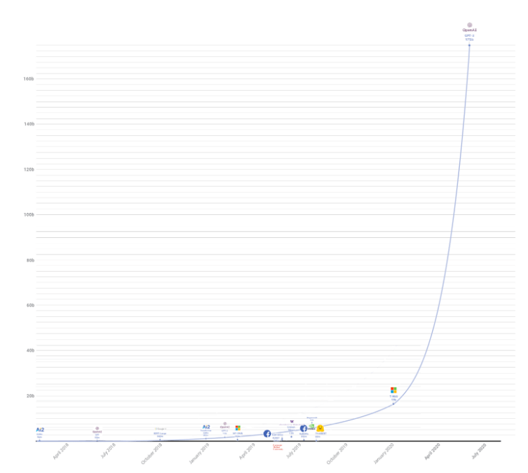 GPT-3’s 175bn Parameters vs Prior Models (the human brain has ~120bn neurons)